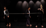 modern nó-dráma átiratát a fizikai és a tárgyszínház eszközeivel állította színpadra, rögtönzött élő zenei kísérettel. A táncosok és a zenészek, akik egyedi famaszkokat viselnek, többfunkciós szerepben jelennek meg a színpadon és átlépik saját műfaji határaikat. Az előadásban a hangok és a mozgás a szabad improvizáció által megteremtett feszültség révén kölcsönösen befolyásolja egymást. Az alkotók különösen fontosnak tartjuk a japán és a magyar hagyományok egymásra hatását. A mozgások kialakítását elmélyült kutatás előzte meg: föltérképezték a japán szertartások (kagurák), a tradicionális (nó) és a kortárs tánc (butoh), a harcművészetek, a zen filozófiája és meditációs gyakorlatai, a dallamvilág, valamint a magyar maszkos hagyományok, a néptánc és a népdalok – a japán pentatóniával megegyező – karakterét, jellegzetességeit.
