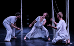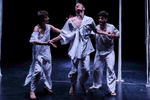 "Az átlépésközeli helyzeteket általában kíváncsisággal vegyes borzongással éljük meg, sokszor olyan talajvesztett, összezavarodott állapotba kerülve, mint a spagettifüggönybe belegabalyodó előadók. A színpadkép (Csasznyi Dénes munkája) a maga megkapó egyszerűségében is különleges lehetőségeket rejtett, hol foglyul ejtette, hol anyaméhhez hasonló biztonságba ringatta a táncosokat. A hosszú szálakból álló függönyökkel három részre osztott színpad – akár a szentháromság – nem tagolta a teret, inkább annak egységét teremtette meg.